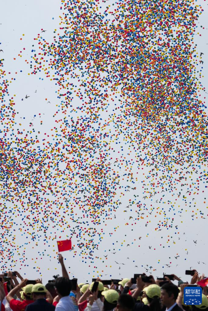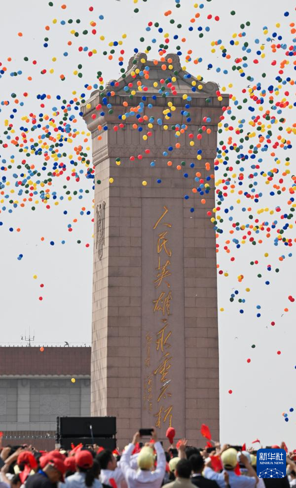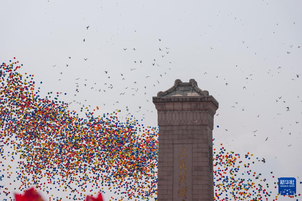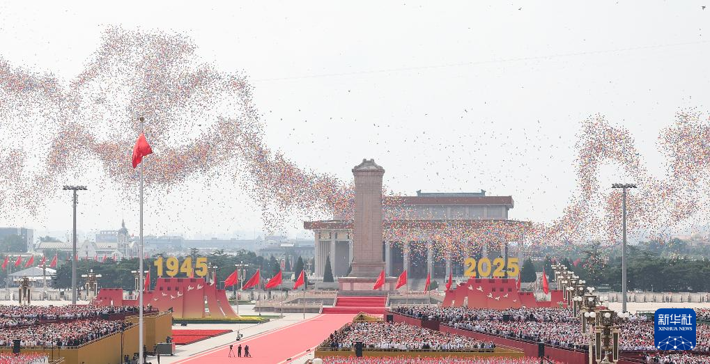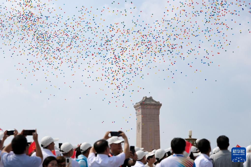 9月3日,纪念中国人民抗日战争暨世界反法西斯战争胜利80周年大会在北京隆重举行。这是纪念大会现场放飞气球。