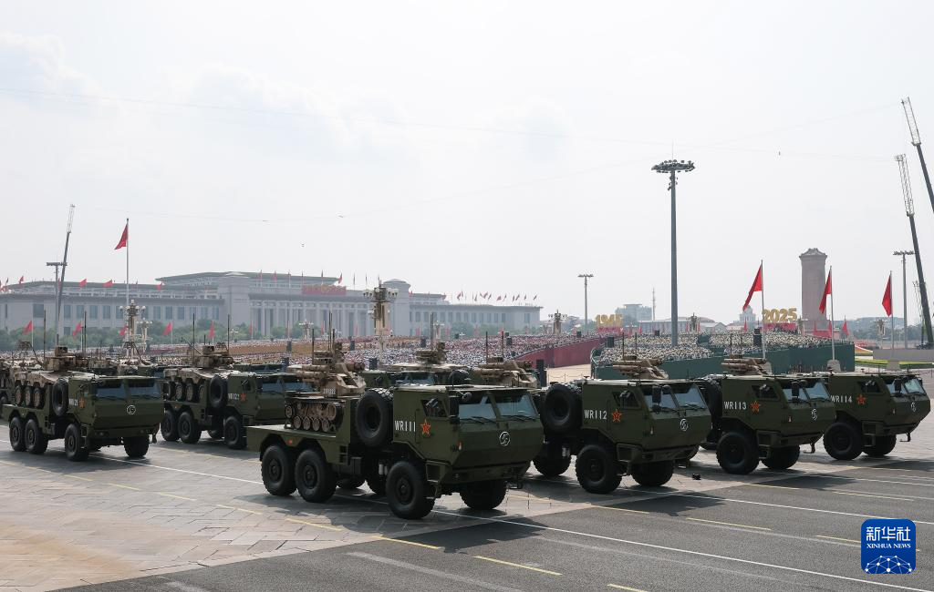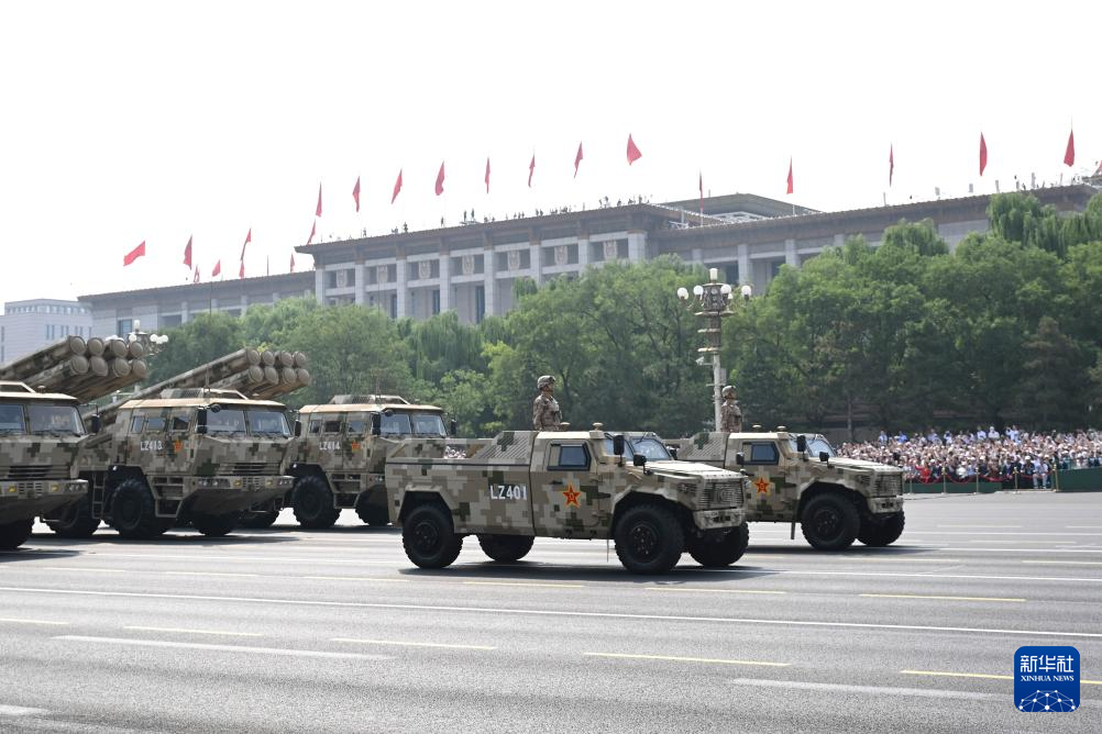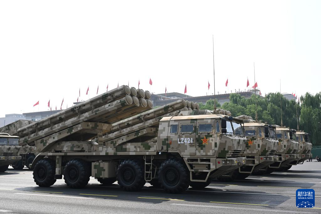 9月3日,纪念中国人民抗日战争暨世界反法西斯战争胜利80周年大会在北京隆重举行。这是远程火炮方队接受检阅。