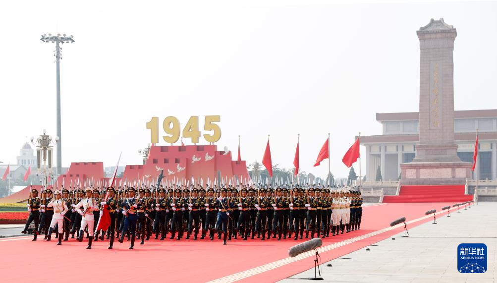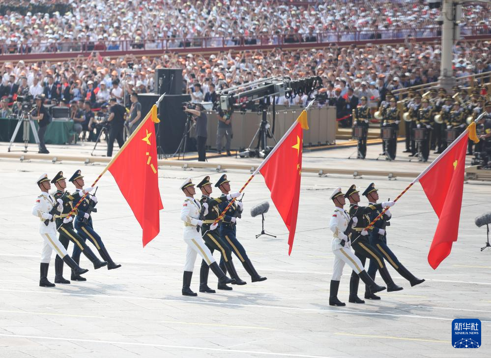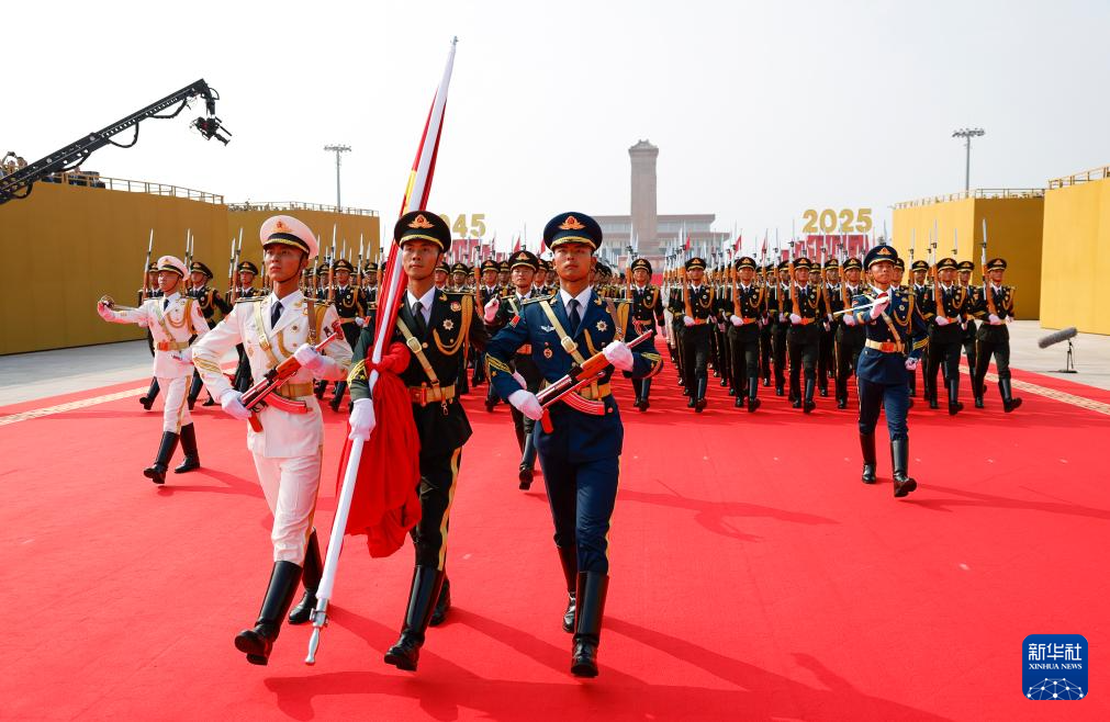 9月3日,纪念中国人民抗日战争暨世界反法西斯战争胜利80周年大会在北京隆重举行。这是国旗护卫队在行进中。