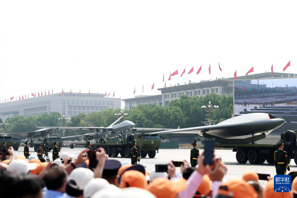 9月3日,纪念中国人民抗日战争暨世界反法西斯战争胜利80周年大会在北京隆重举行。这是空中无人作战方队接受检阅。