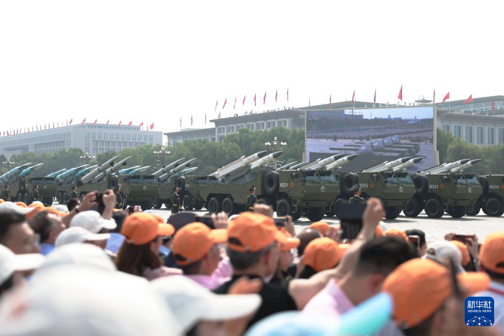 9月3日,纪念中国人民抗日战争暨世界反法西斯战争胜利80周年大会在北京隆重举行。这是反舰导弹方队接受检阅。