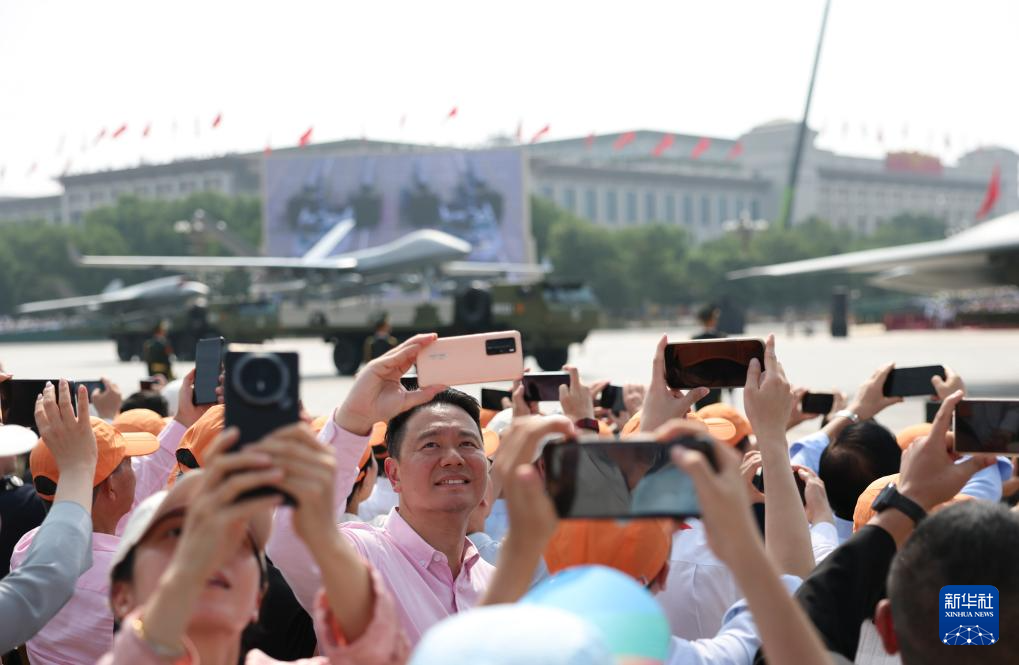 9月3日,纪念中国人民抗日战争暨世界反法西斯战争胜利80周年大会在北京隆重举行。这是观礼嘉宾在拍照。