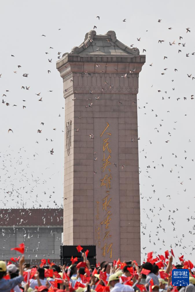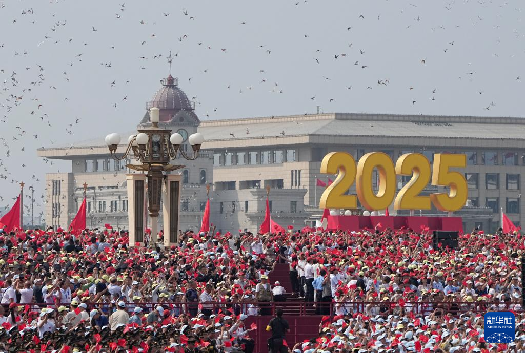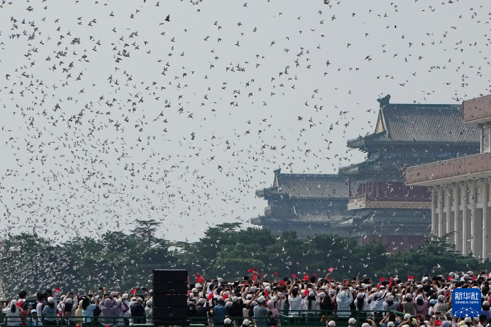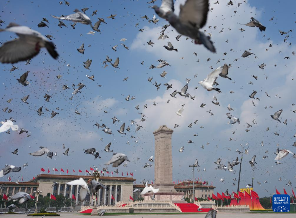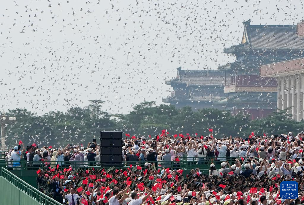 9月3日,纪念中国人民抗日战争暨世界反法西斯战争胜利80周年大会在北京隆重举行。这是纪念大会现场放飞和平鸽。