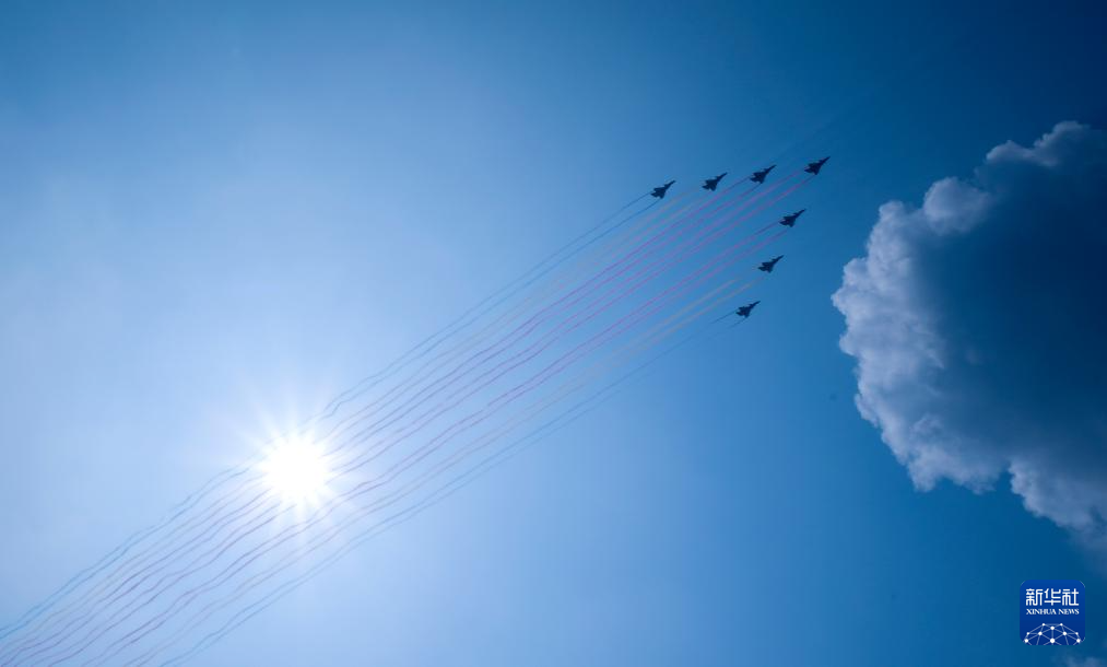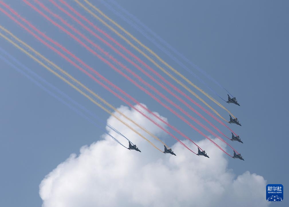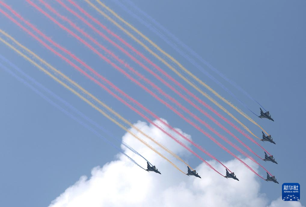9月3日,纪念中国人民抗日战争暨世界反法西斯战争胜利80周年大会在北京隆重举行。这是教练机梯队接受检阅。
