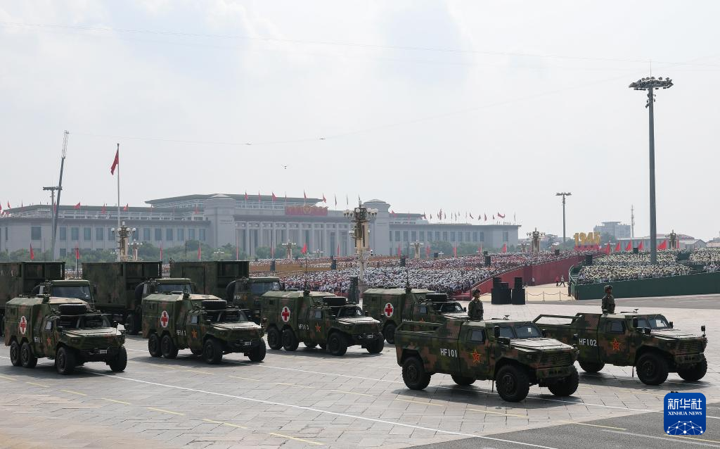 9月3日,纪念中国人民抗日战争暨世界反法西斯战争胜利80周年大会在北京隆重举行。这是后勤保障方队接受检阅。