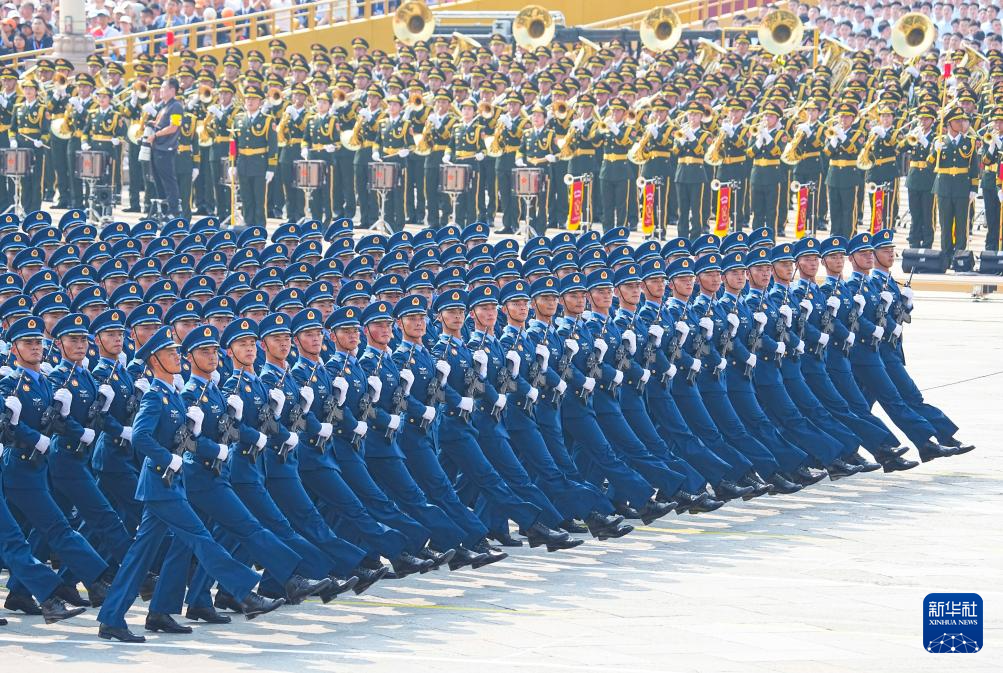 9月3日,纪念中国人民抗日战争暨世界反法西斯战争胜利80周年大会在北京隆重举行。这是空军方队走过天安门广场。