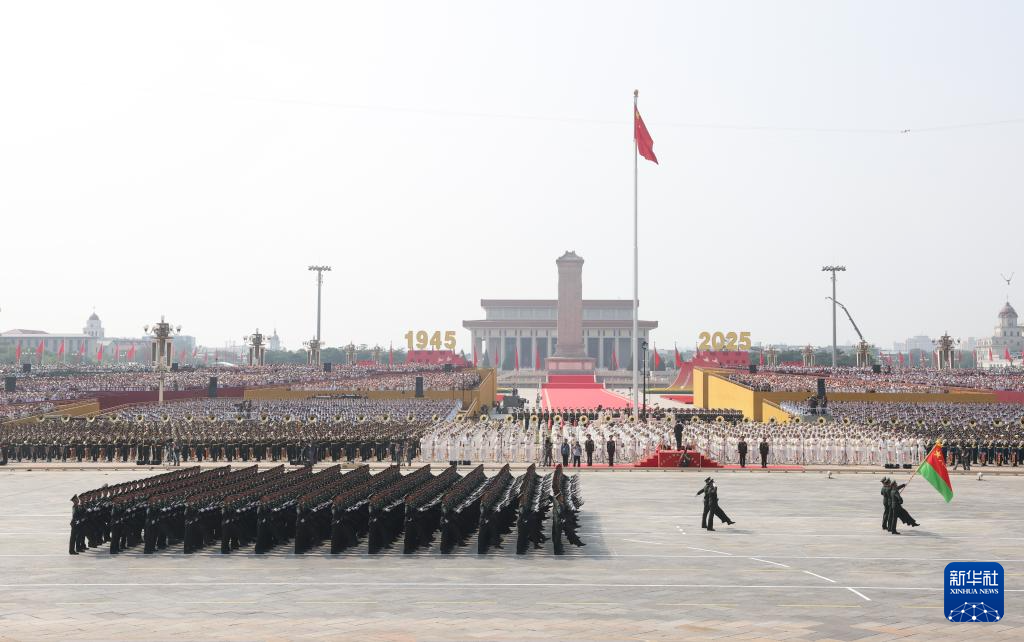 9月3日,纪念中国人民抗日战争暨世界反法西斯战争胜利80周年大会在北京隆重举行。这是中国人民解放军仪仗方队走过天安门广场。