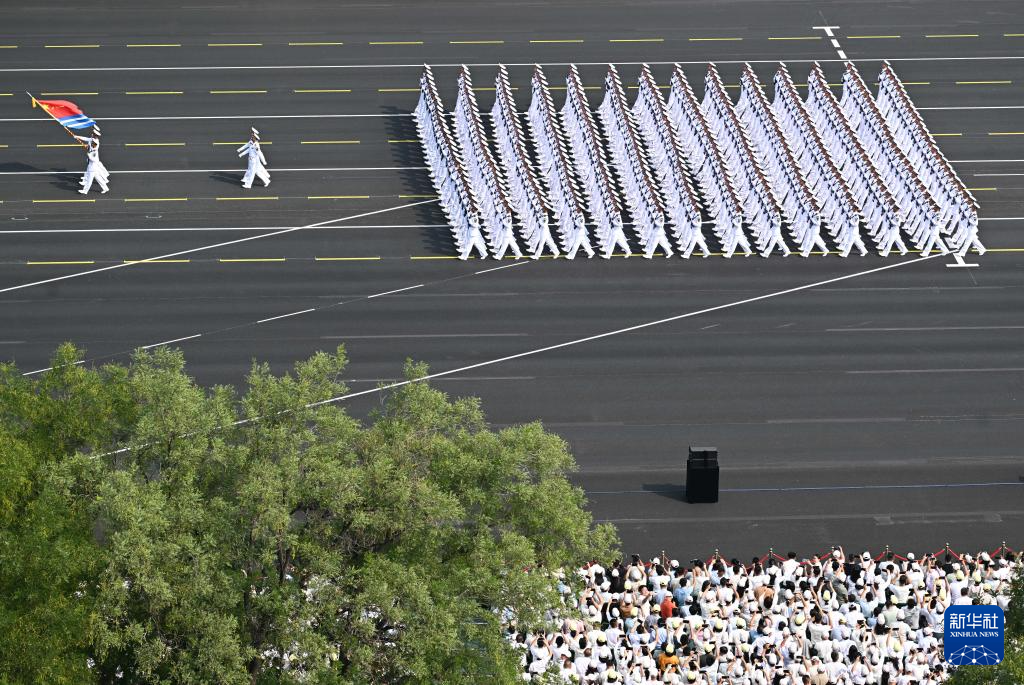 9月3日,纪念中国人民抗日战争暨世界反法西斯战争胜利80周年大会在北京隆重举行。这是海军方队通过天安门广场。