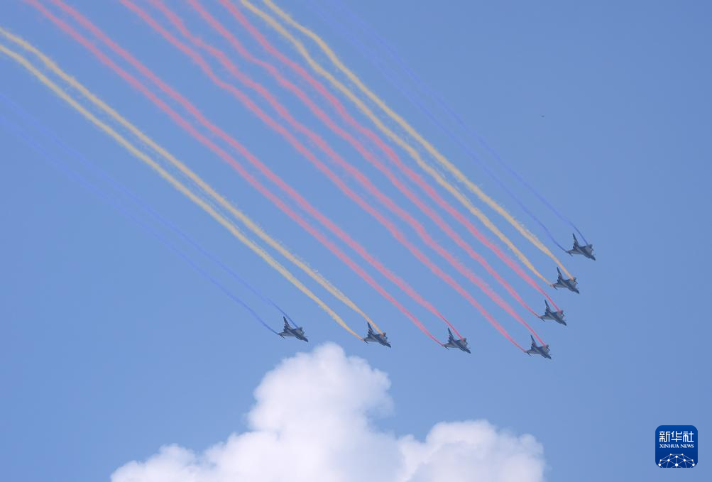9月3日,纪念中国人民抗日战争暨世界反法西斯战争胜利80周年大会在北京隆重举行。这是教练机梯队。