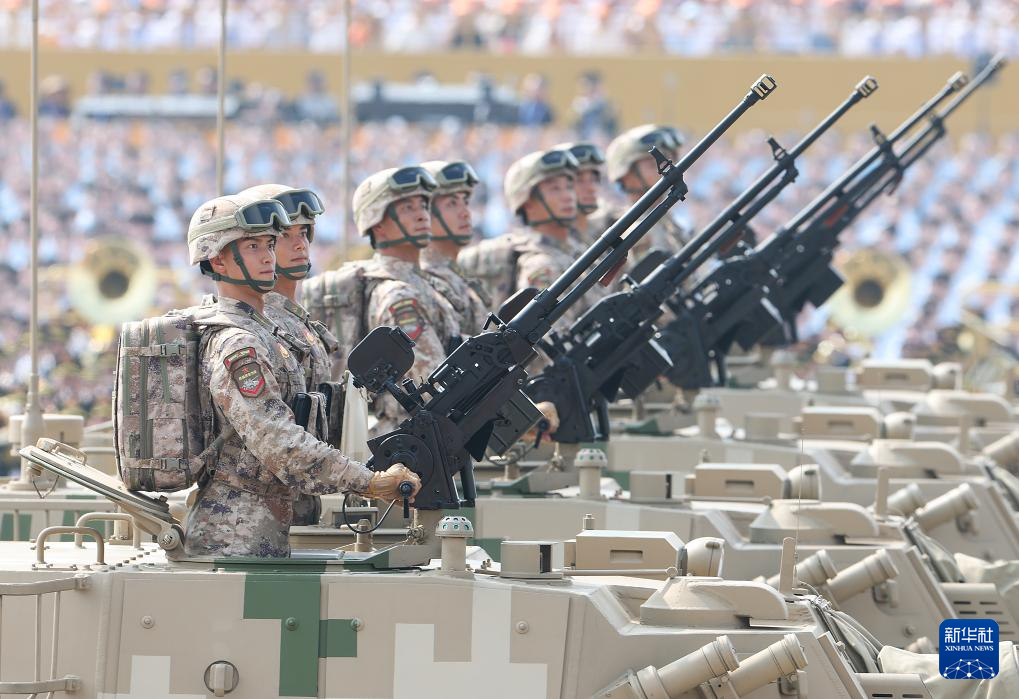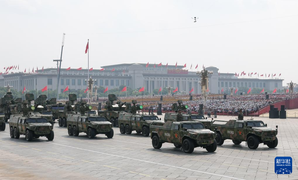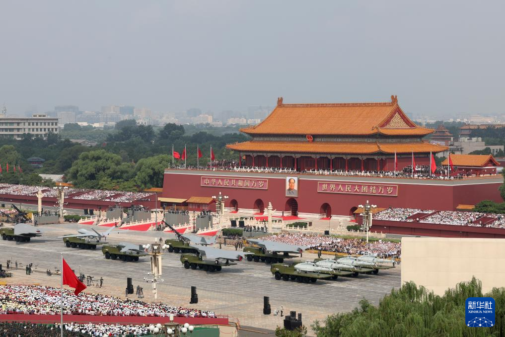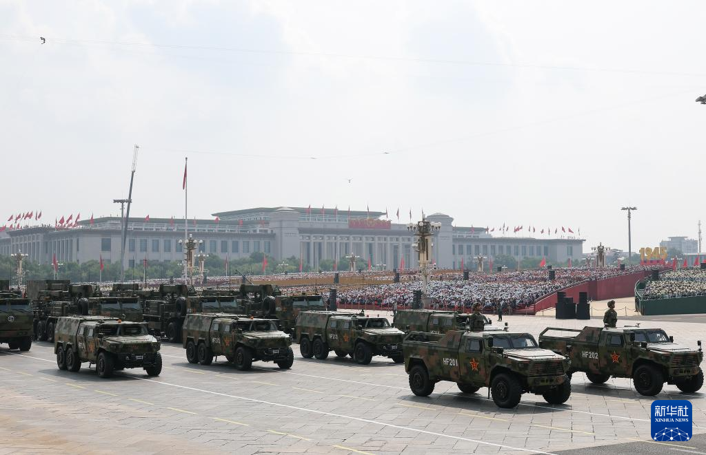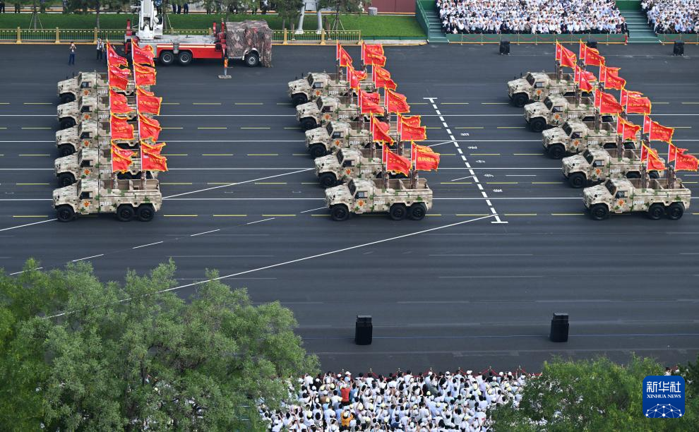 9月3日,纪念中国人民抗日战争暨世界反法西斯战争胜利80周年大会在北京隆重举行。这是装备方队接受检阅。