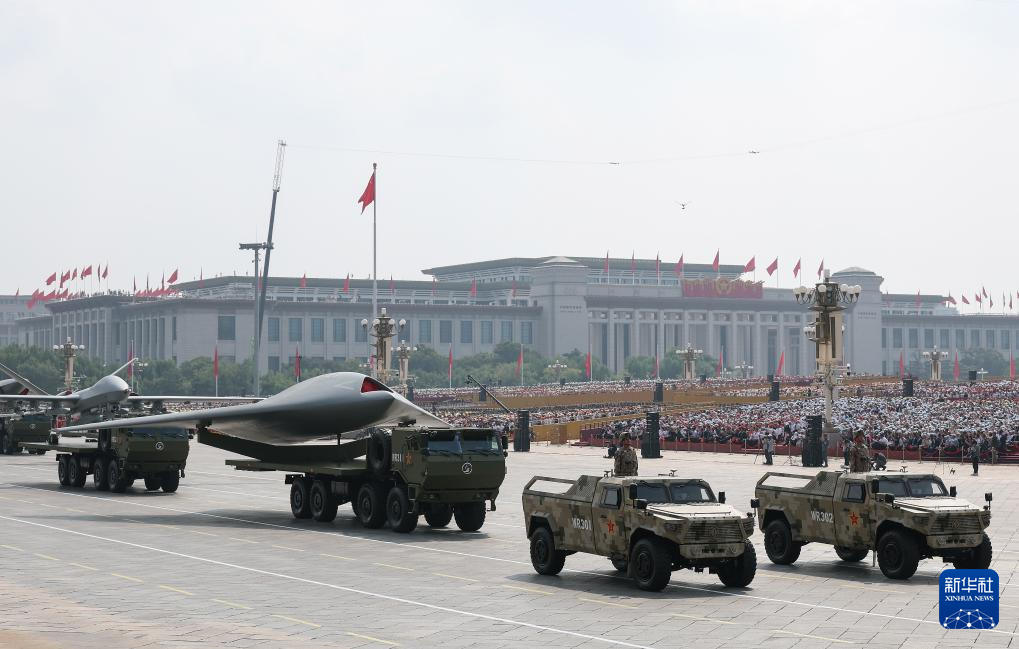 9月3日,纪念中国人民抗日战争暨世界反法西斯战争胜利80周年大会在北京隆重举行。这是空中无人作战方队接受检阅。