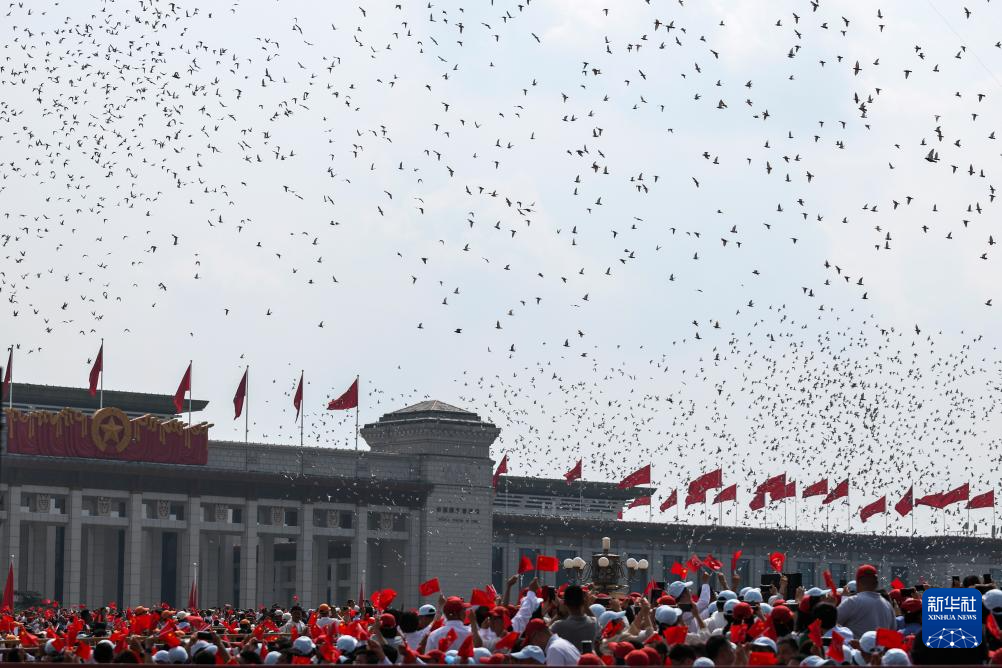 9月3日,纪念中国人民抗日战争暨世界反法西斯战争胜利80周年大会在北京隆重举行。这是纪念大会现场放飞鸽子。