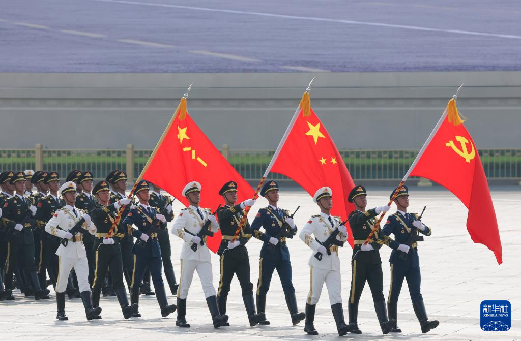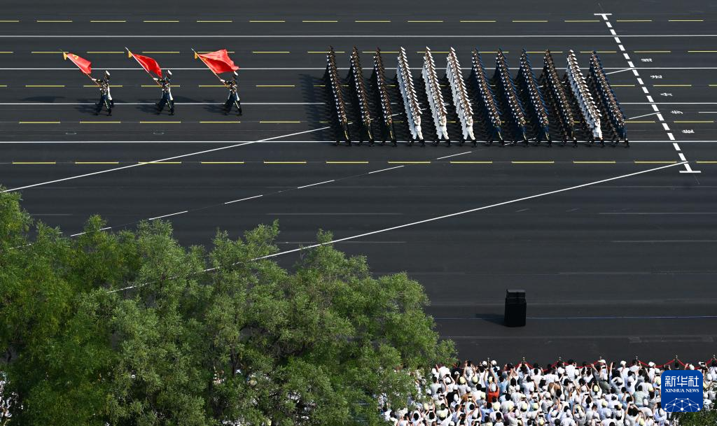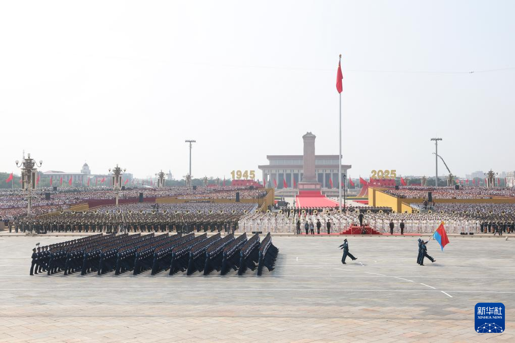 9月3日,纪念中国人民抗日战争暨世界反法西斯战争胜利80周年大会在北京隆重举行。这是国旗护卫队在天安门广场列队。