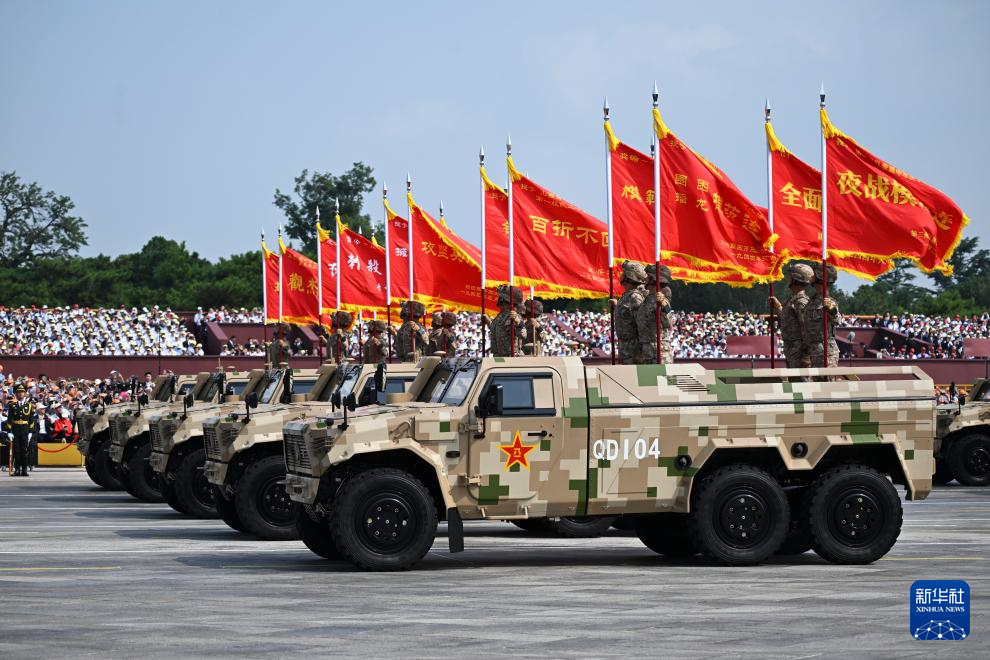9月3日,纪念中国人民抗日战争暨世界反法西斯战争胜利80周年大会在北京隆重举行。这是装备保障方队接受检阅。