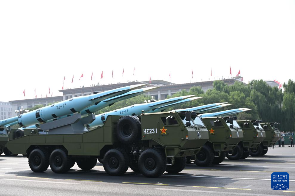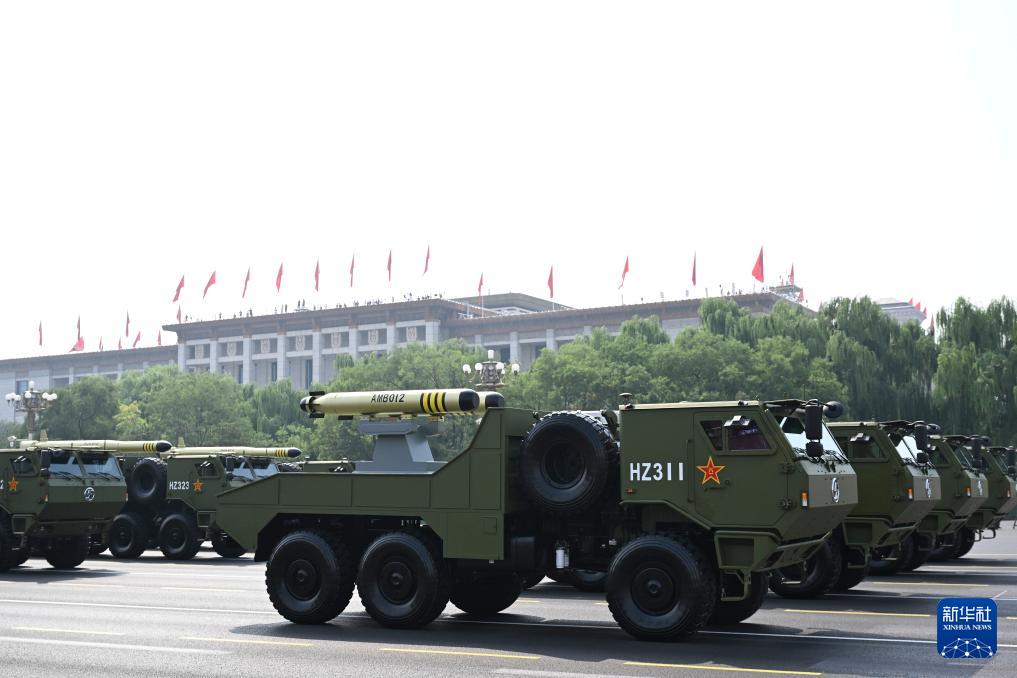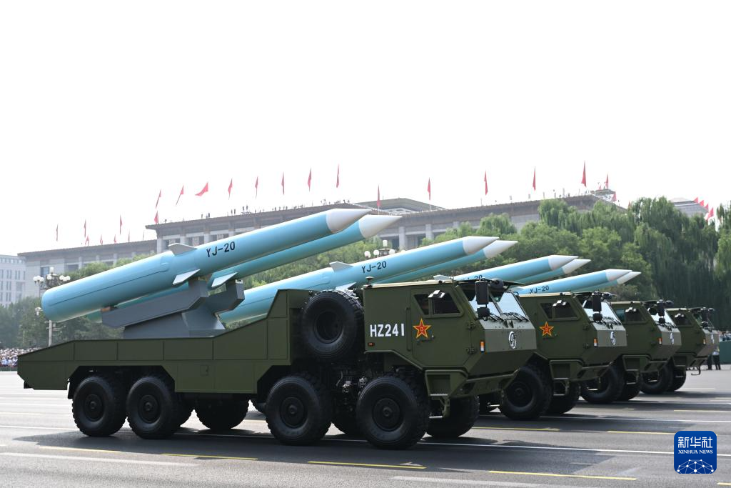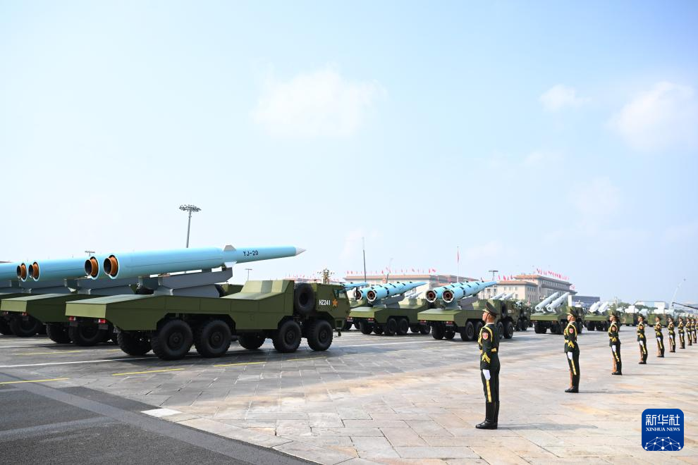 9月3日,纪念中国人民抗日战争暨世界反法西斯战争胜利80周年大会在北京隆重举行。这是反舰导弹方队接受检阅。