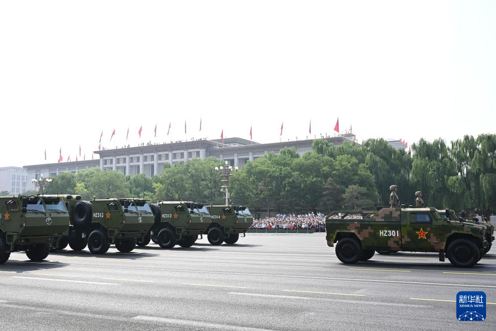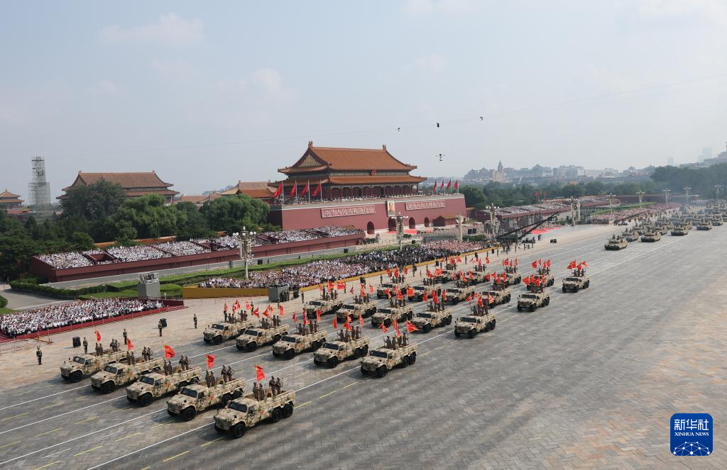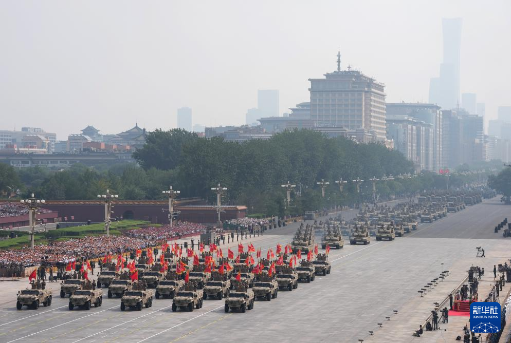 9月3日,纪念中国人民抗日战争暨世界反法西斯战争胜利80周年大会在北京隆重举行。这是信息支援方队通过天安门广场。