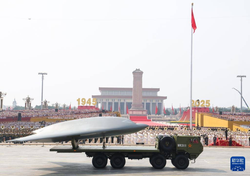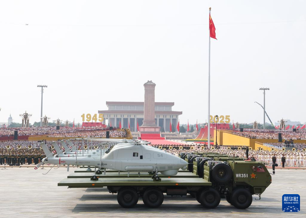 9月3日,纪念中国人民抗日战争暨世界反法西斯战争胜利80周年大会在北京隆重举行。这是空中无人作战方队接受检阅。