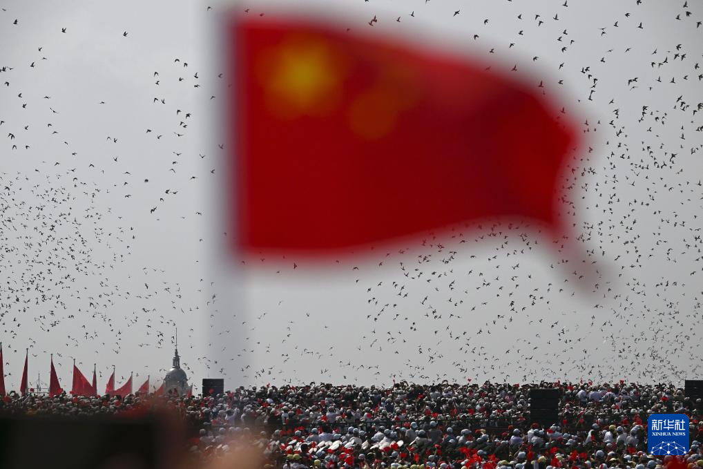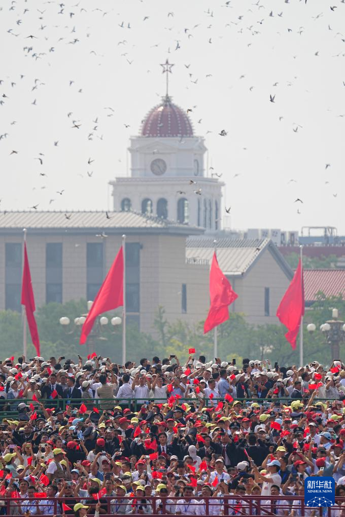 9月3日,纪念中国人民抗日战争暨世界反法西斯战争胜利80周年大会在北京隆重举行。这是纪念大会现场放飞和平鸽。