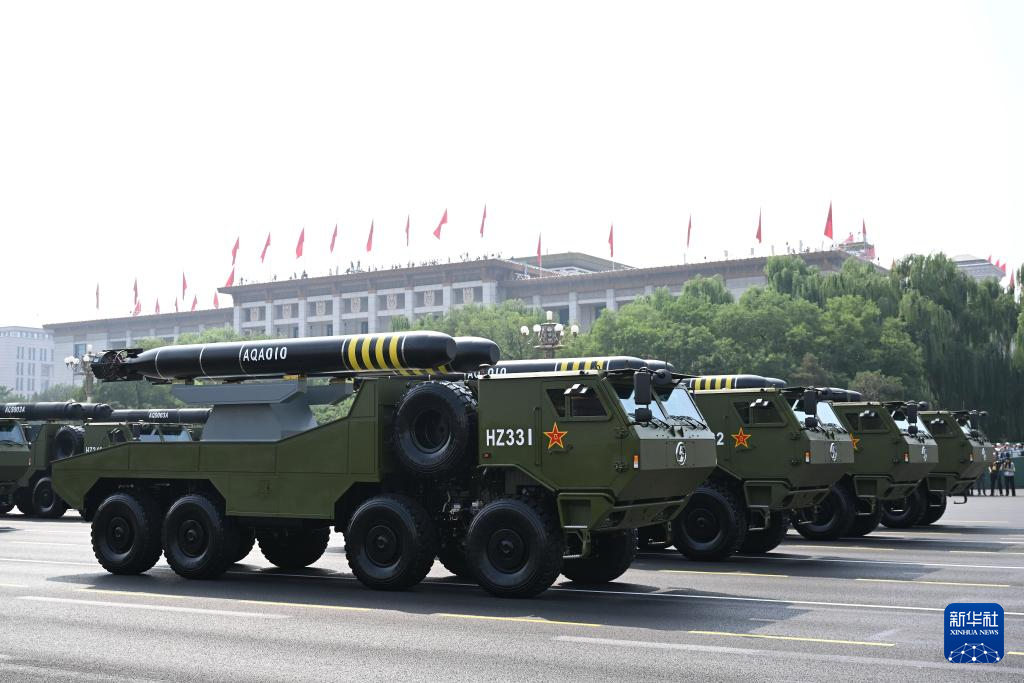 9月3日,纪念中国人民抗日战争暨世界反法西斯战争胜利80周年大会在北京隆重举行。这是水下兵器方队接受检阅。