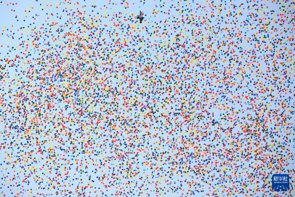 9月3日,纪念中国人民抗日战争暨世界反法西斯战争胜利80周年大会在北京隆重举行。这是纪念大会现场放飞气球。