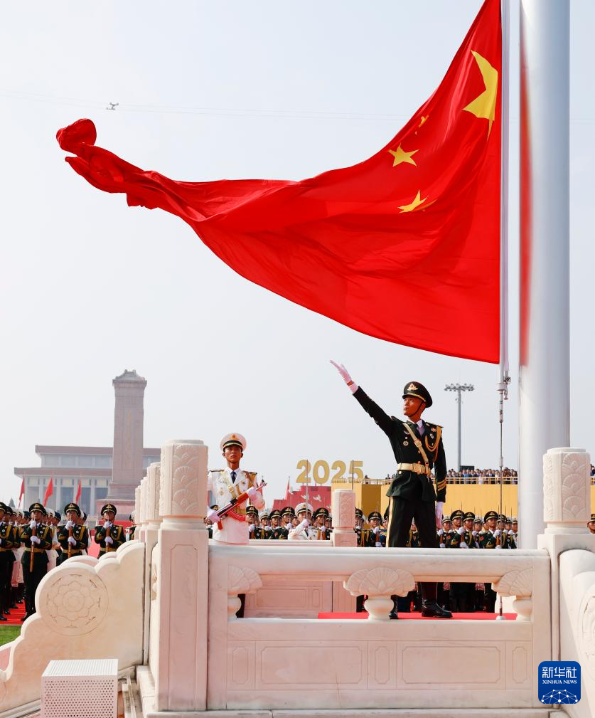 9月3日,纪念中国人民抗日战争暨世界反法西斯战争胜利80周年大会在北京隆重举行。这是天安门广场举行隆重的升国旗仪式。
