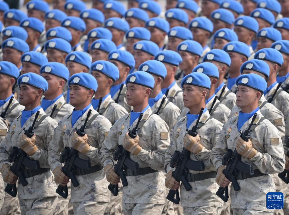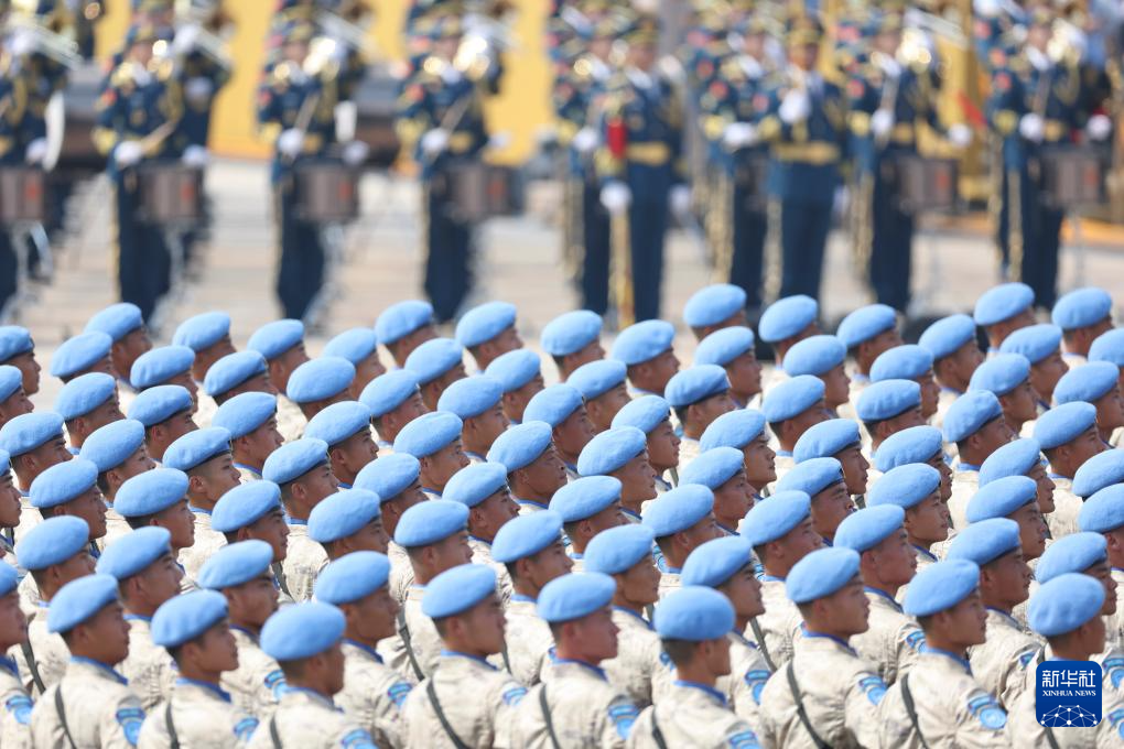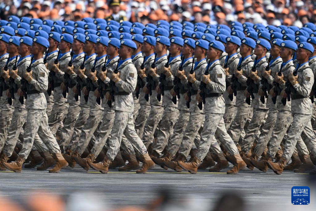 9月3日,纪念中国人民抗日战争暨世界反法西斯战争胜利80周年大会在北京隆重举行。这是维和部队方队接受检阅。
