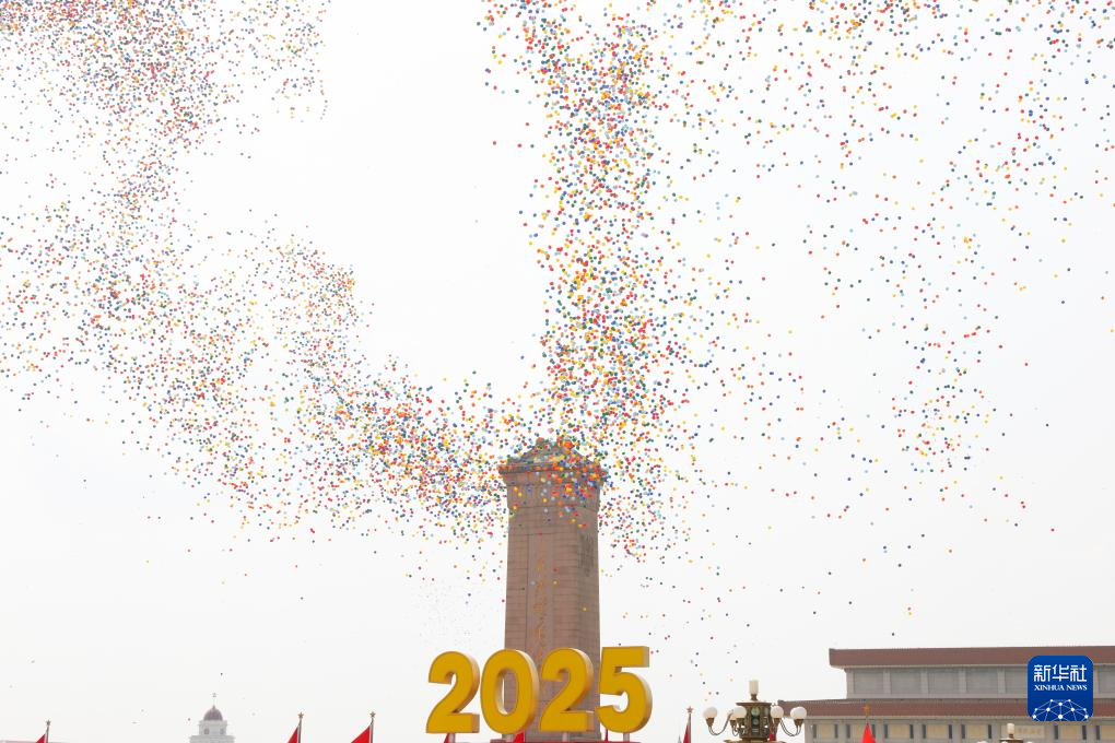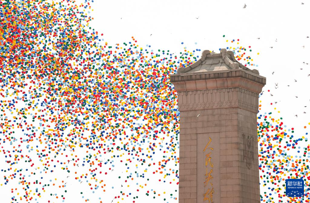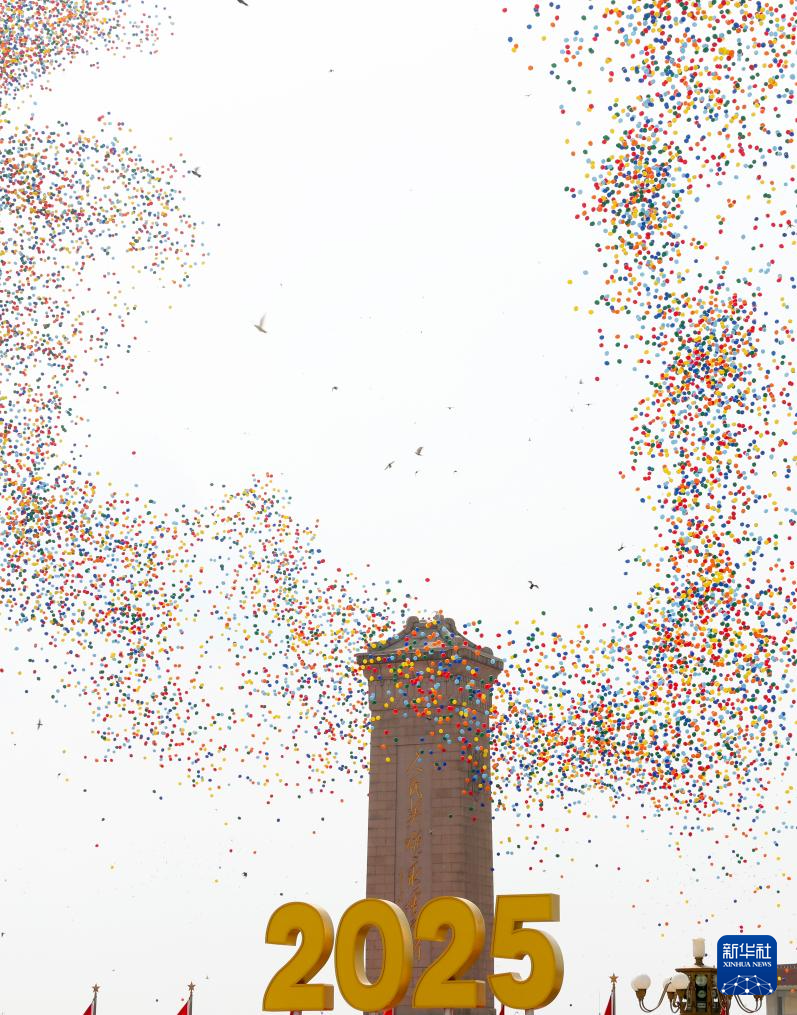 9月3日,纪念中国人民抗日战争暨世界反法西斯战争胜利80周年大会在北京隆重举行。这是纪念大会现场放飞气球。