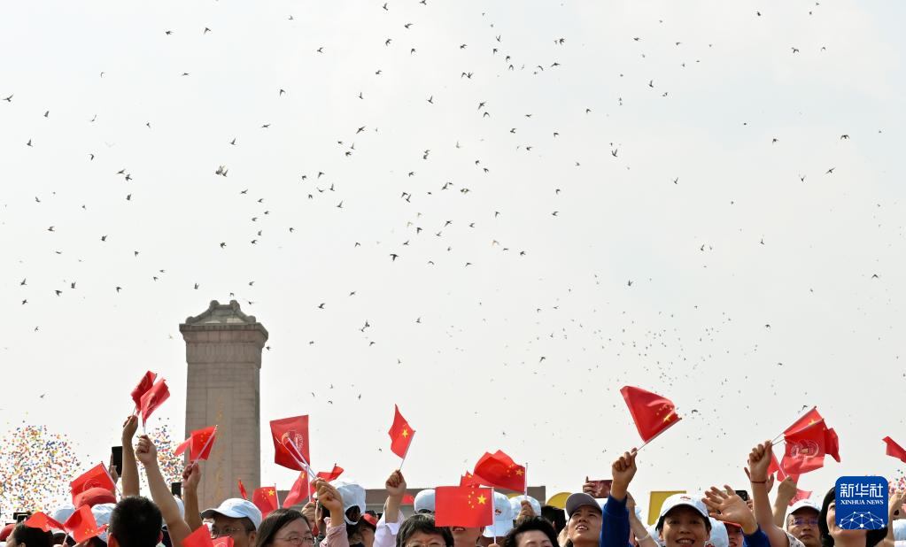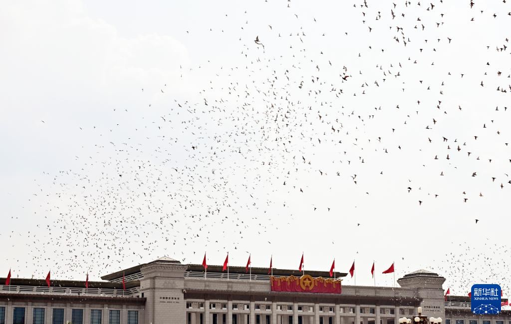 9月3日,纪念中国人民抗日战争暨世界反法西斯战争胜利80周年大会在北京隆重举行。这是纪念大会现场放飞鸽子。