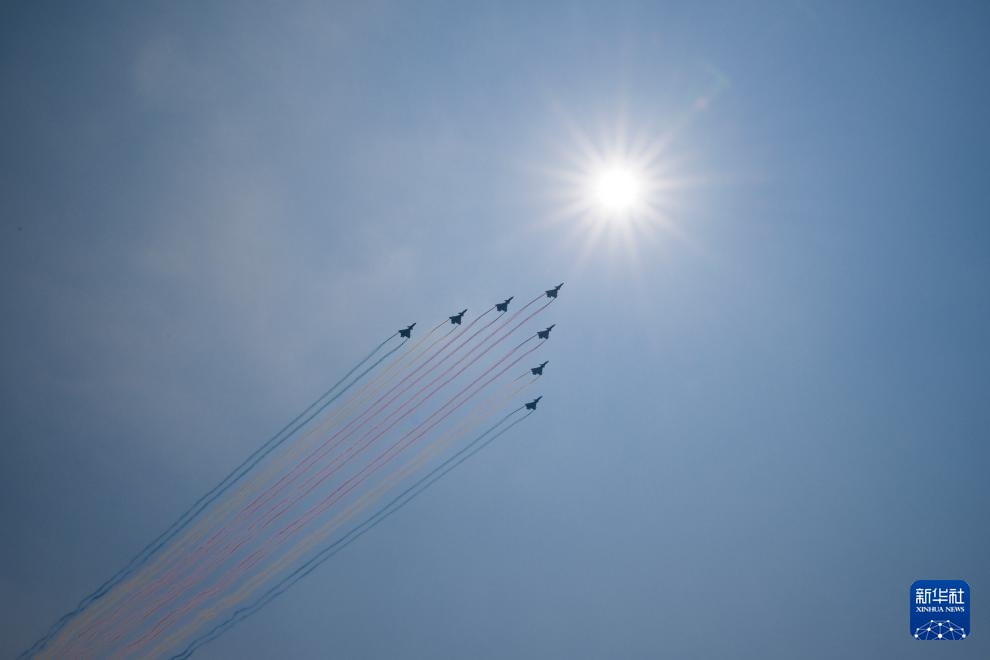 9月3日,纪念中国人民抗日战争暨世界反法西斯战争胜利80周年大会在北京隆重举行。这是教练机梯队接受检阅。