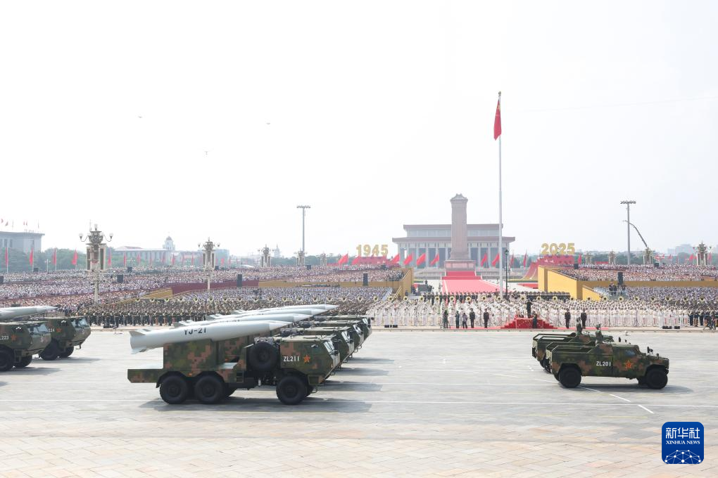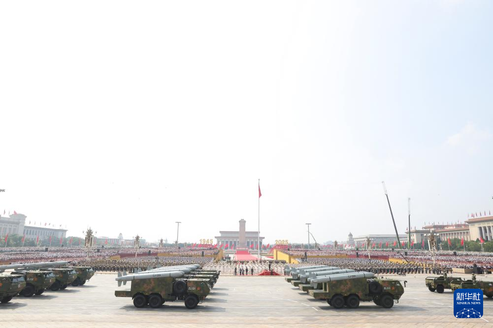 9月3日,纪念中国人民抗日战争暨世界反法西斯战争胜利80周年大会在北京隆重举行。这是高超声速导弹方队接受检阅。