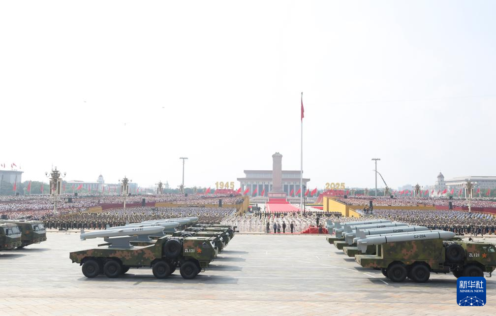 9月3日,纪念中国人民抗日战争暨世界反法西斯战争胜利80周年大会在北京隆重举行。这是巡航导弹方队接受检阅。