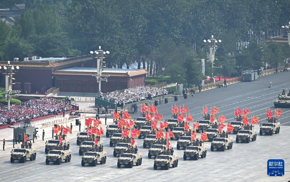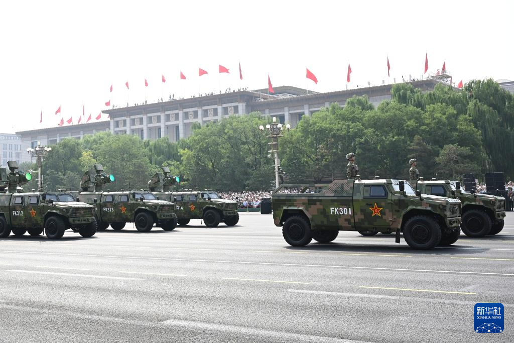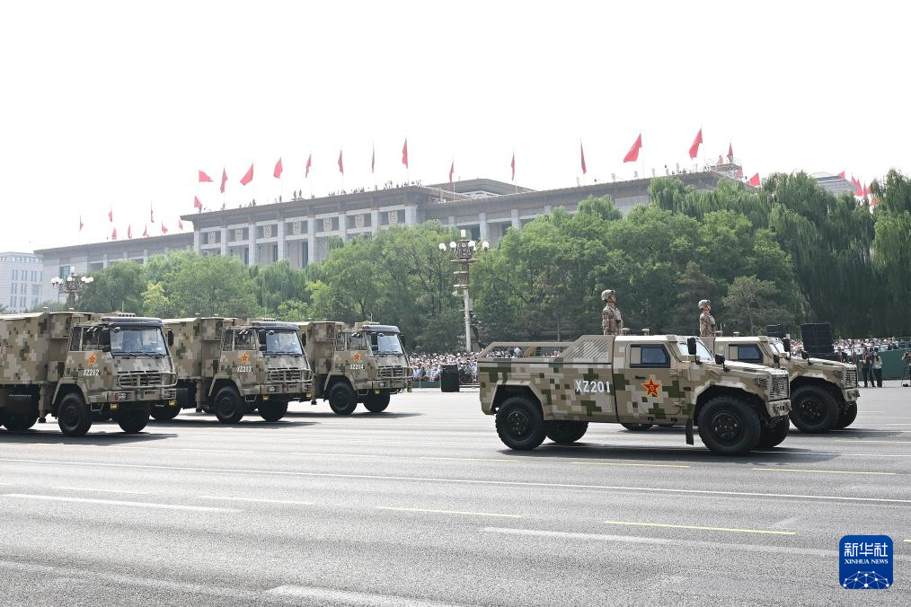 9月3日,纪念中国人民抗日战争暨世界反法西斯战争胜利80周年大会在北京隆重举行。这是信息支援方队接受检阅。