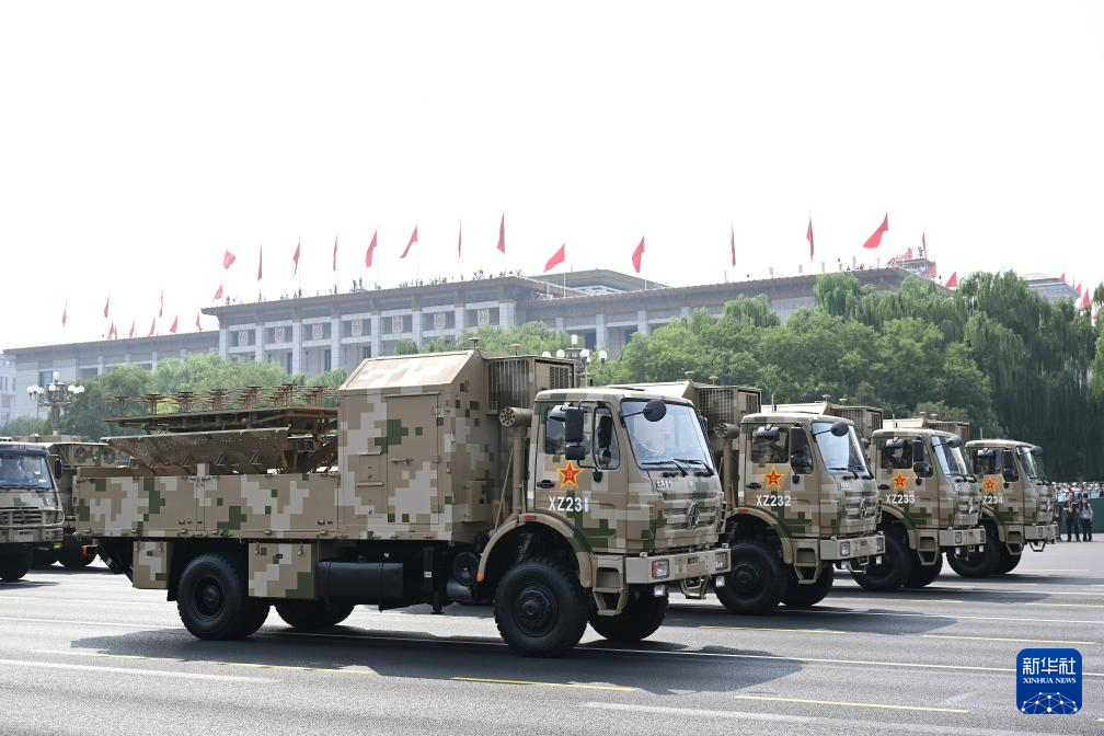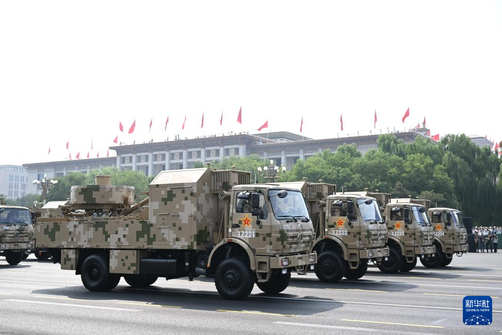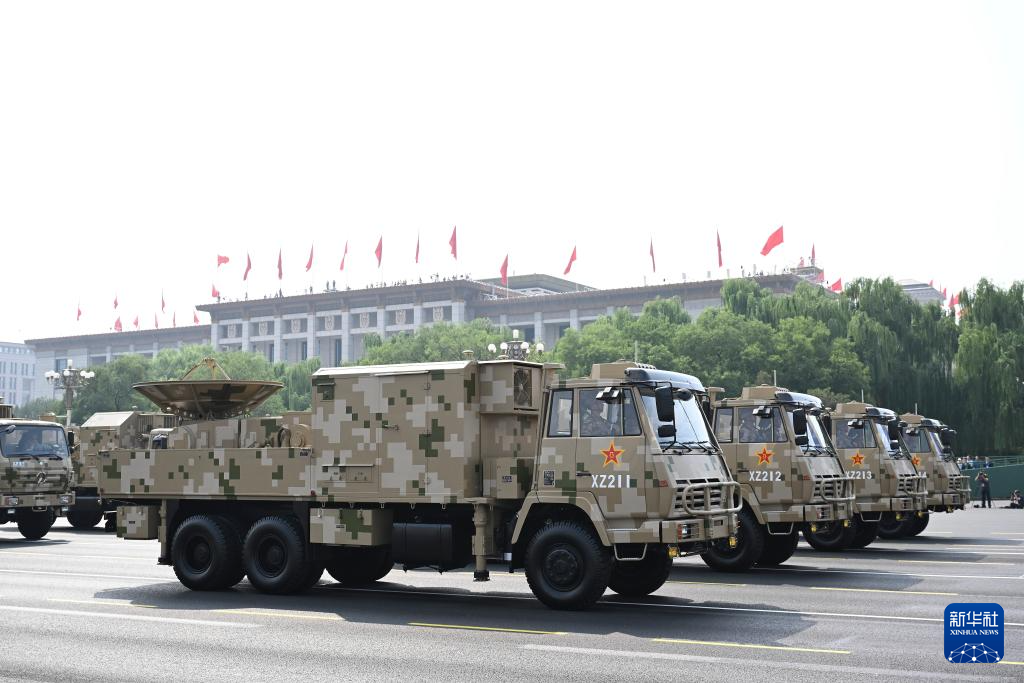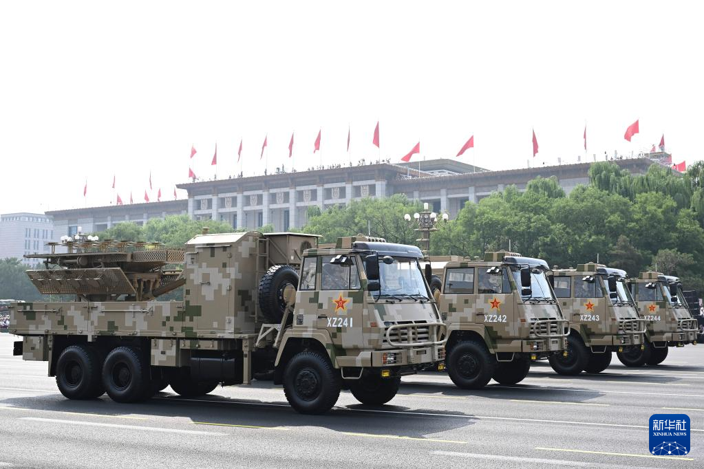 9月3日,纪念中国人民抗日战争暨世界反法西斯战争胜利80周年大会在北京隆重举行。这是电子对抗方队接受检阅。