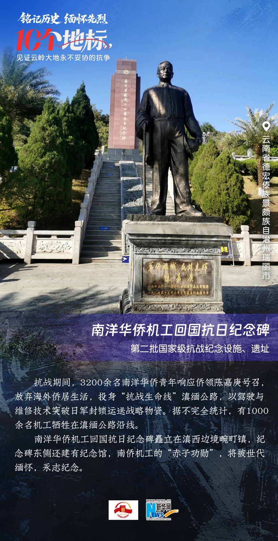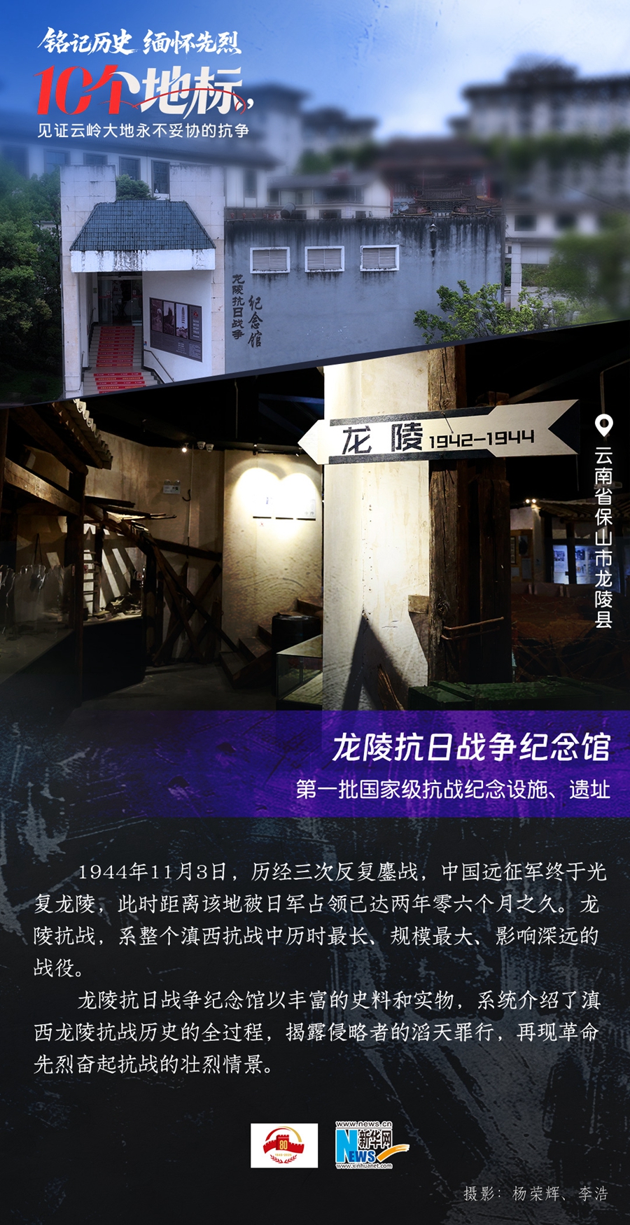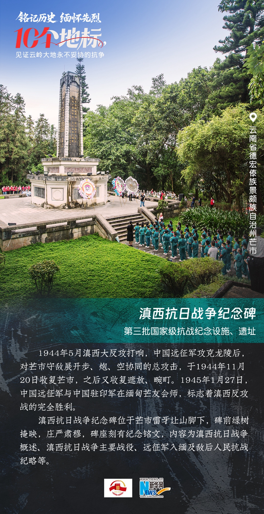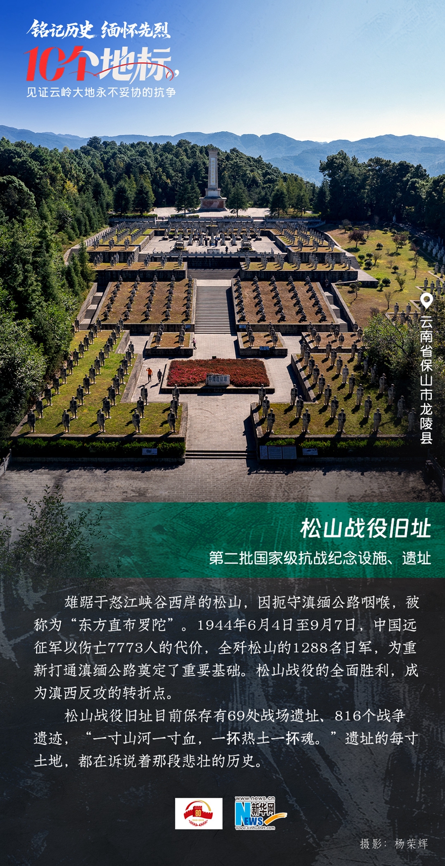 80年过去,曾经的战场硝烟虽散,但英气永存。在国务院公布的前三批国家级抗战纪念设施、遗址名录中,云南省共有10个,分别为腾冲国殇墓园、腾冲滇西抗战纪念馆,龙陵抗日战争纪念馆,国立西南联合大学旧址,抗战胜利纪念堂,松山战役旧址,南洋华侨机工回国抗日纪念碑,怒江驼峰航线纪念馆,施甸县抗日江防遗迹群,滇缅公路惠通桥,滇西抗日战争纪念碑。它们承载着国人共同的历史记忆与民族情感,也为我们学习和传承抗战精神提供了现实条件。