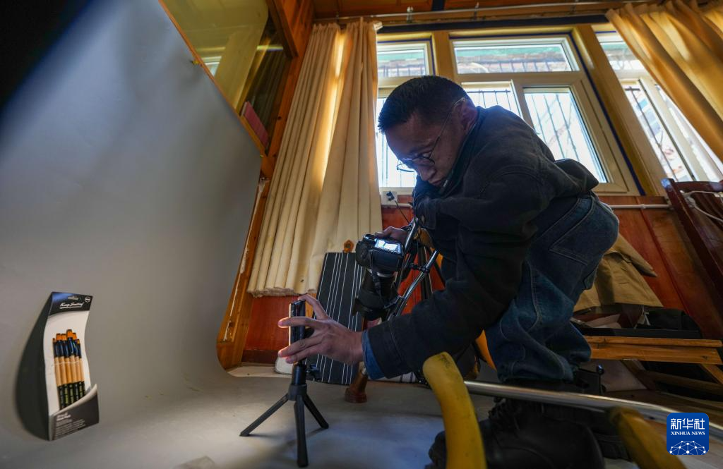拉巴顿珠在公司拍摄产品(5月5日摄)。新华社记者 晋美多吉 摄