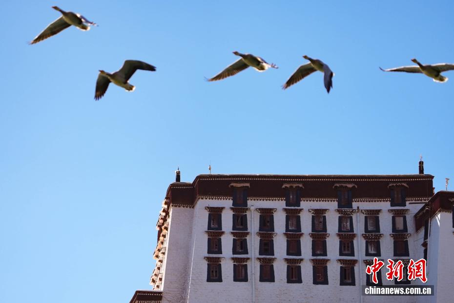 11月17日,西藏拉萨迎来大批越冬候鸟。拉萨河、宗角禄康公园等地,成为了它们的栖息天堂。在宗角禄康公园内,赤麻鸭、斑头雁成群结队,时而低头觅食,时而水中嬉戏。它们的身影引得市民和游客纷纷驻足观赏、拍照留念,构成了一幅人与自然和谐共生的美丽画卷。图为斑头雁与布达拉宫同框。贡确 摄