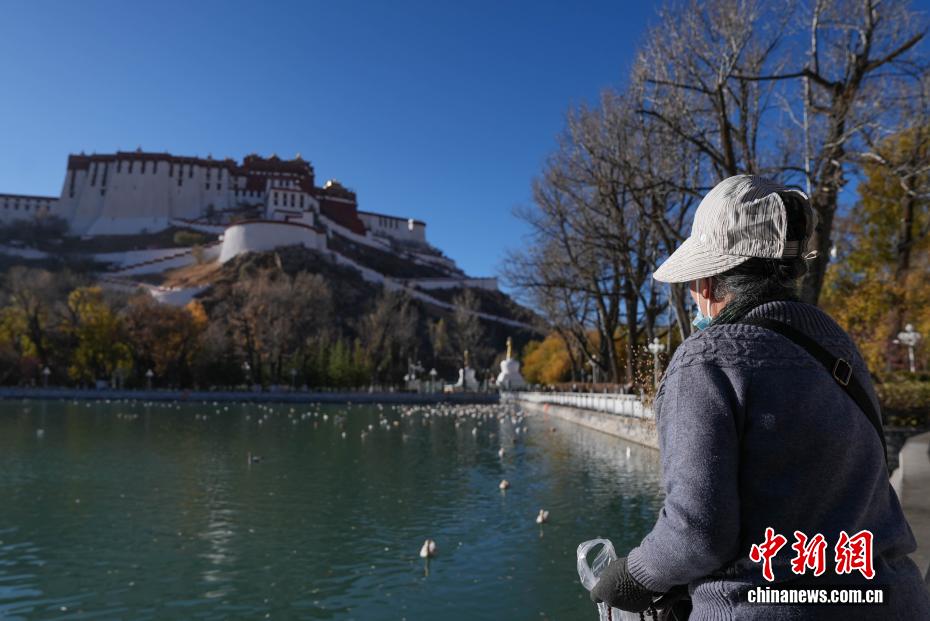 11月17日,西藏拉萨迎来大批越冬候鸟。拉萨河、宗角禄康公园等地,成为了它们的栖息天堂。在宗角禄康公园内,赤麻鸭、斑头雁成群结队,时而低头觅食,时而水中嬉戏。它们的身影引得市民和游客纷纷驻足观赏、拍照留念,构成了一幅人与自然和谐共生的美丽画卷。图为市民在宗角禄康公园内投喂候鸟。贡确 摄