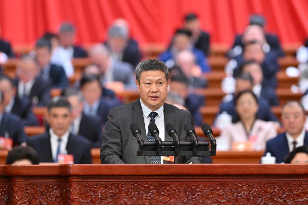 3月7日,全国政协十四届四次会议在北京人民大会堂举行第二次全体会议。这是解冬委员代表民建中央作题为《推动科技创新和产业创新深度融合 塑造高质量发展新动能》的发言。新华社记者 刘卫兵 摄