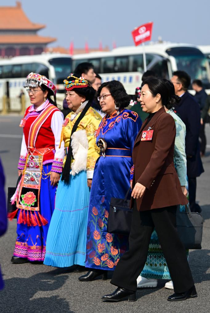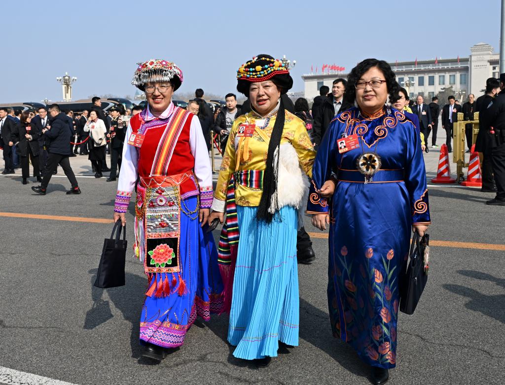 3月8日,全国政协十四届四次会议在北京人民大会堂举行第三次全体会议。这是全国政协委员走向会场。新华社记者 陈晔华 摄