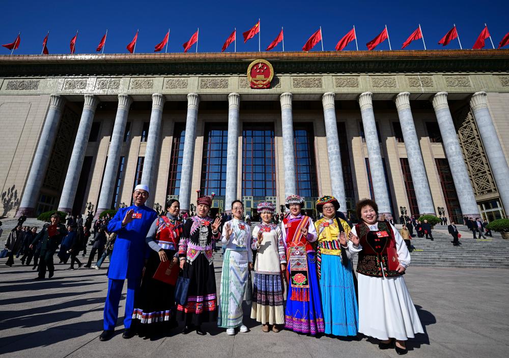 3月11日,全国政协十四届四次会议在北京人民大会堂举行闭幕会。这是闭幕会后,委员们在人民大会堂前合影。新华社记者 陈晔华 摄