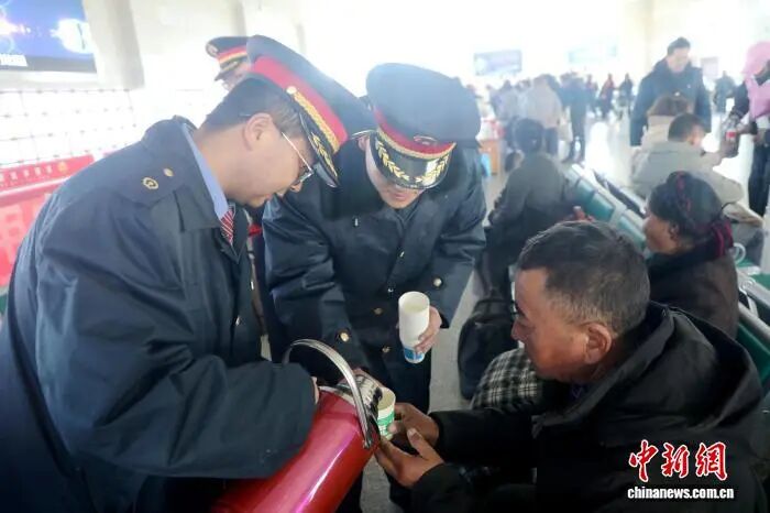 墨香未尽,暖意更浓。候车大厅里,党员志愿者、“小花朵”青年志愿者化身“天路格桑花”,穿梭在旅客中间。他们手捧福字送上祝福,端来热气腾腾的酥油茶、甜茶,用浓郁奶香驱散高原寒意,抚平旅途疲惫。