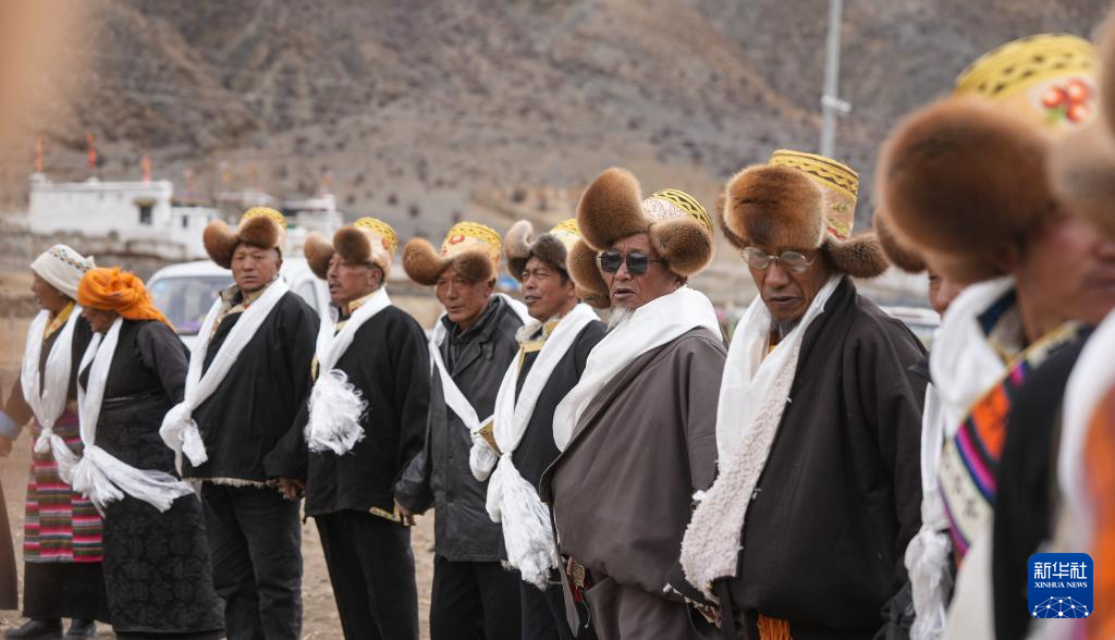 旺庆老人(左七)在春耕大典上唱颂词(3月16日摄)。新华社记者 晋美多吉 摄