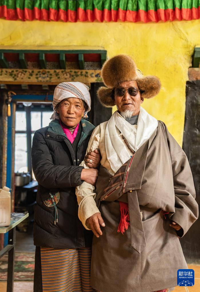 旺庆老人(右)和家人在家里合影(3月16日摄)。新华社记者 丁增尼达 摄